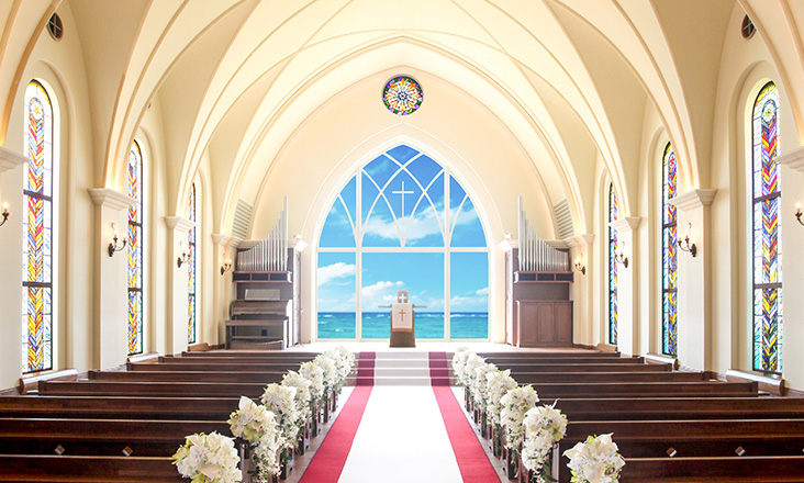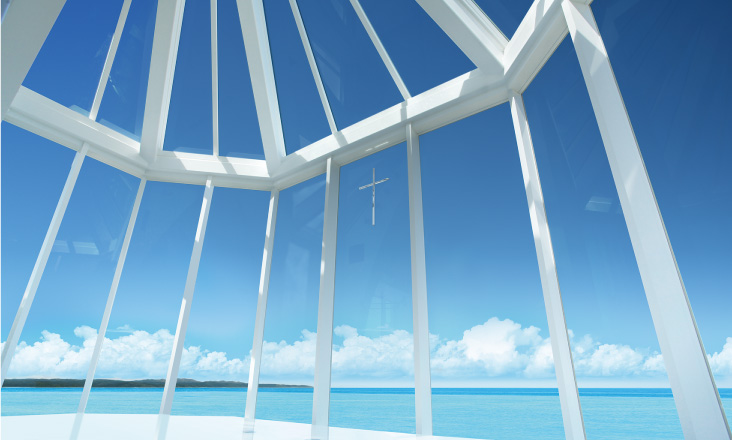 コンセプト:空と海、緑につつまれるクラシカル・モダンな礼拝堂!