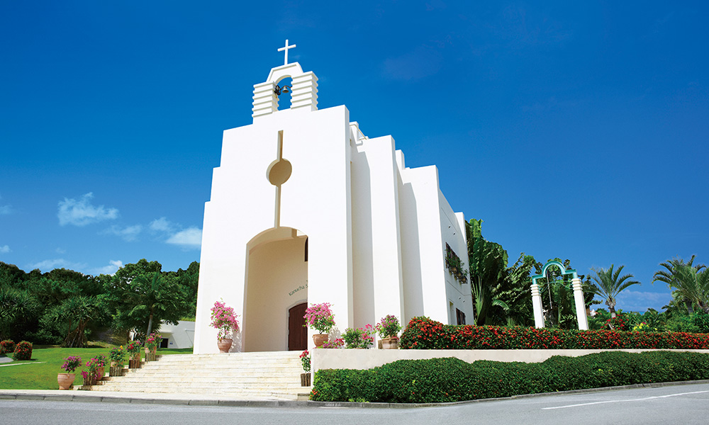 このチャペルは、80万坪の広大なリゾートタウン『カヌチャベイホテル&ヴィラス』内にあります。
